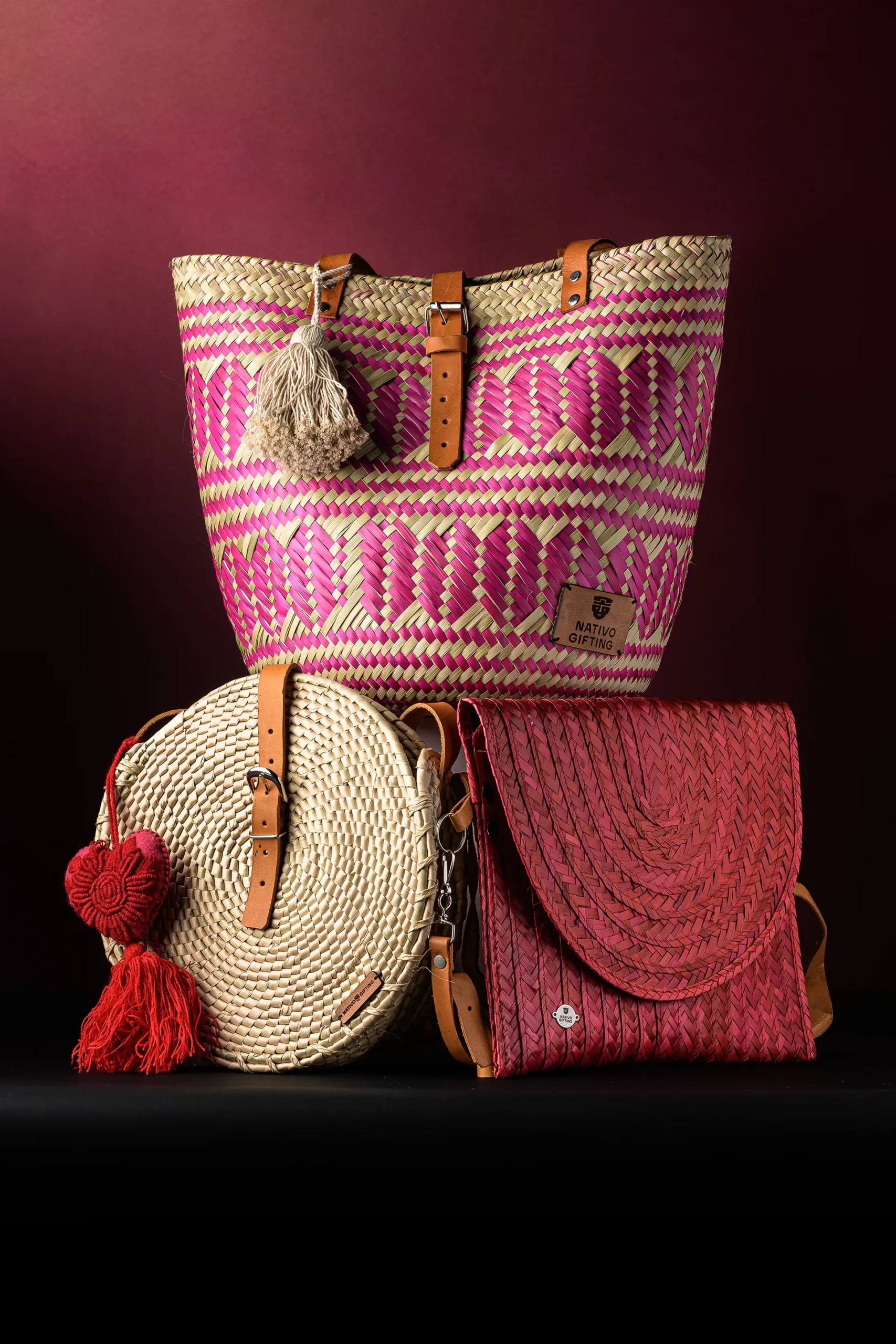 Handwoven in the heart of Oaxaca, our palm bags come to life in multiple shapes, colors, and sizes. Each piece is a reflection of the region's rich textile tradition.